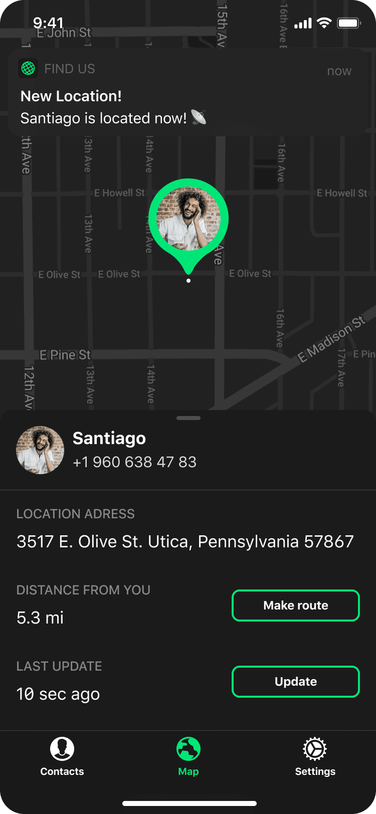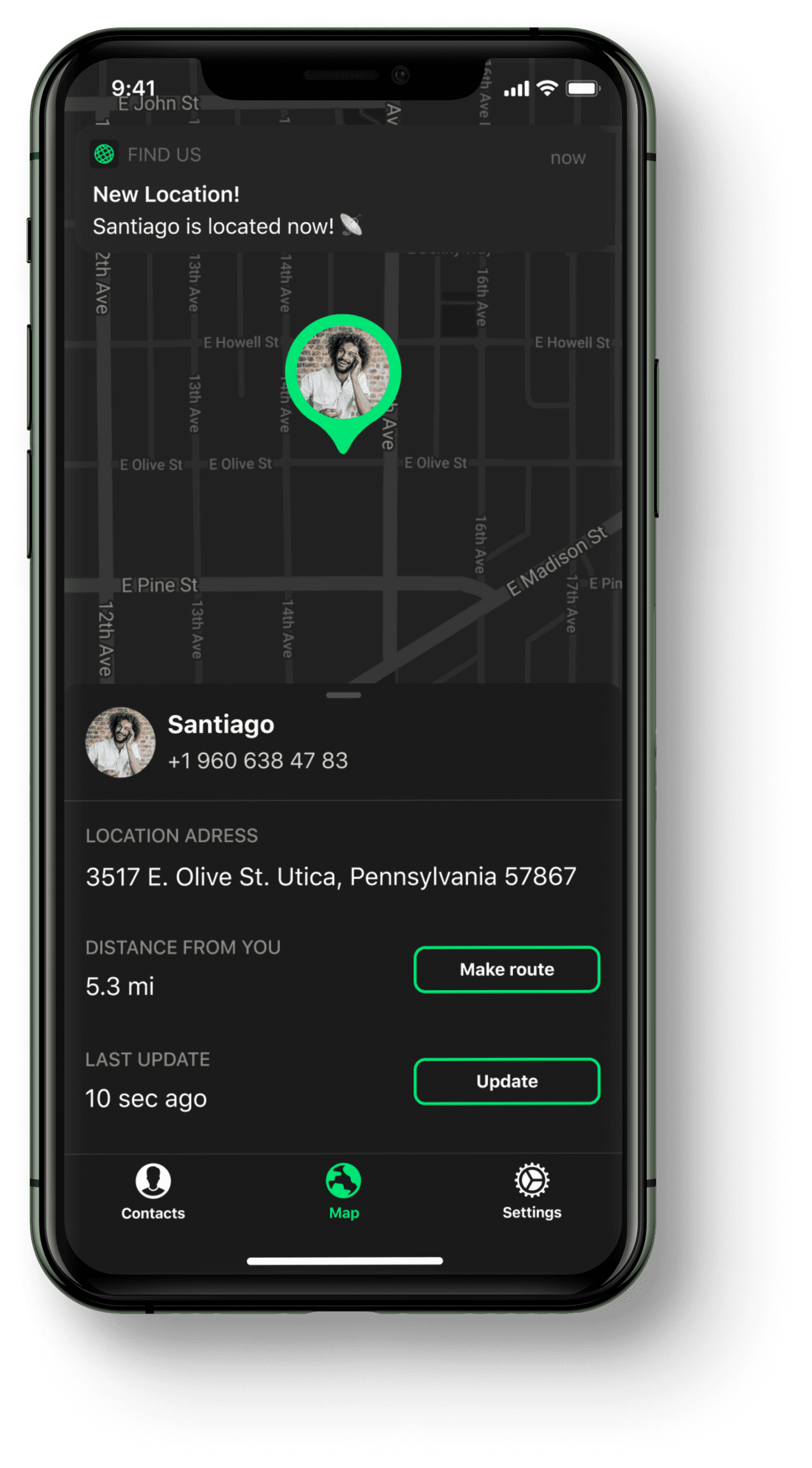 FindUs is location tracker by GPS. With FindUs you will always find your family members